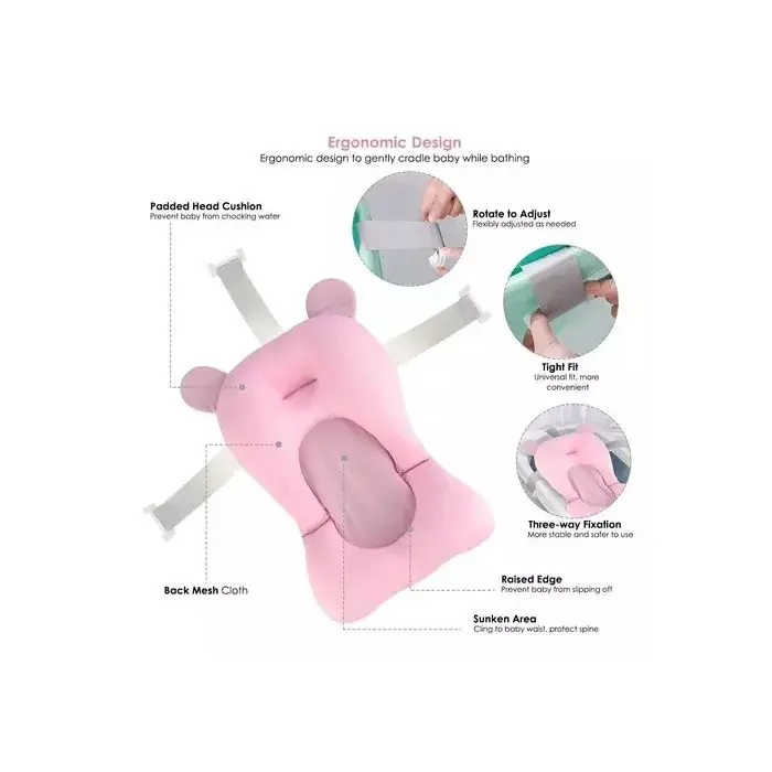 Características: Algodón de lycra de calidad y tela de malla 3D con partículas EPS rellenas. Diseño ergonómico para bebé suavemente mientras se baña. Sección de cabeza elevada para evitar la asfixia El área hundida se adhiere a la cintura del bebé y protege la columna vertebral. Borde elevado para evitar que el bebé se resbale. Las partículas de EPS rellenas internas ofrecen suficiente flotabilidad para evitar que el bebé/recién nacido se hunda. Se puede fijar firmemente a la bañera con dos hebillas laterales. Regalo perfecto para las nuevas mamás. Material superior: hecho de algodón de licra de calidad y tela de malla 3D con relleno de partículas de EPS suave, agradable para la piel del bebé y hace que tu bebé esté cómodo cuando se duche Diseño ergonómico: sección de cabeza elevada para mantener la cabeza del bebé siempre fuera del agua; área hundida se adhiere a la cintura del bebé y protege la columna vertebral; borde elevado para evitar que el bebé se resbale. Fácil de usar: las hebillas en la parte superior y los dos lados te permiten fijar fácilmente y firmemente a la bañera del bebé. Ya no tendrás que preocuparte por que el cojín se deslice completamente en el agua mientras te bañas. Almohadilla de baño para bebé: este cojín de baño contorneado es de tamaño perfecto para recién nacidos y bebés para un baño cómodo y cómodo, hace que tu bebé se relaje durante cada baño como en el útero.