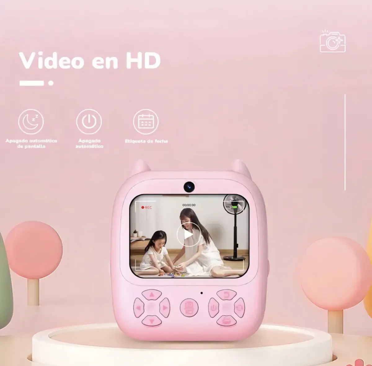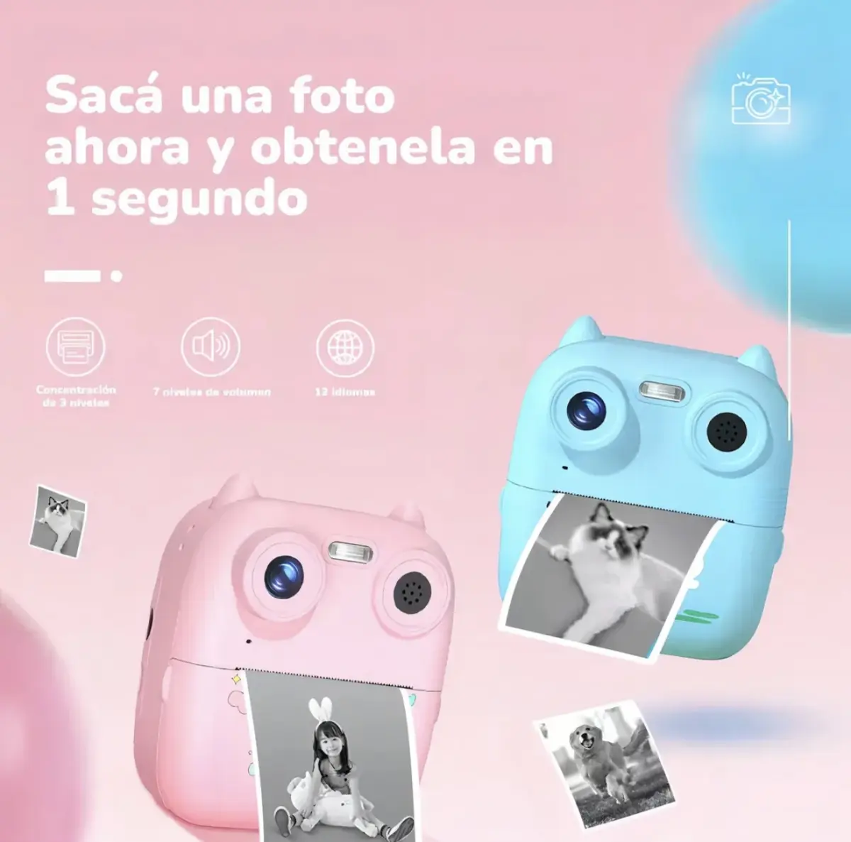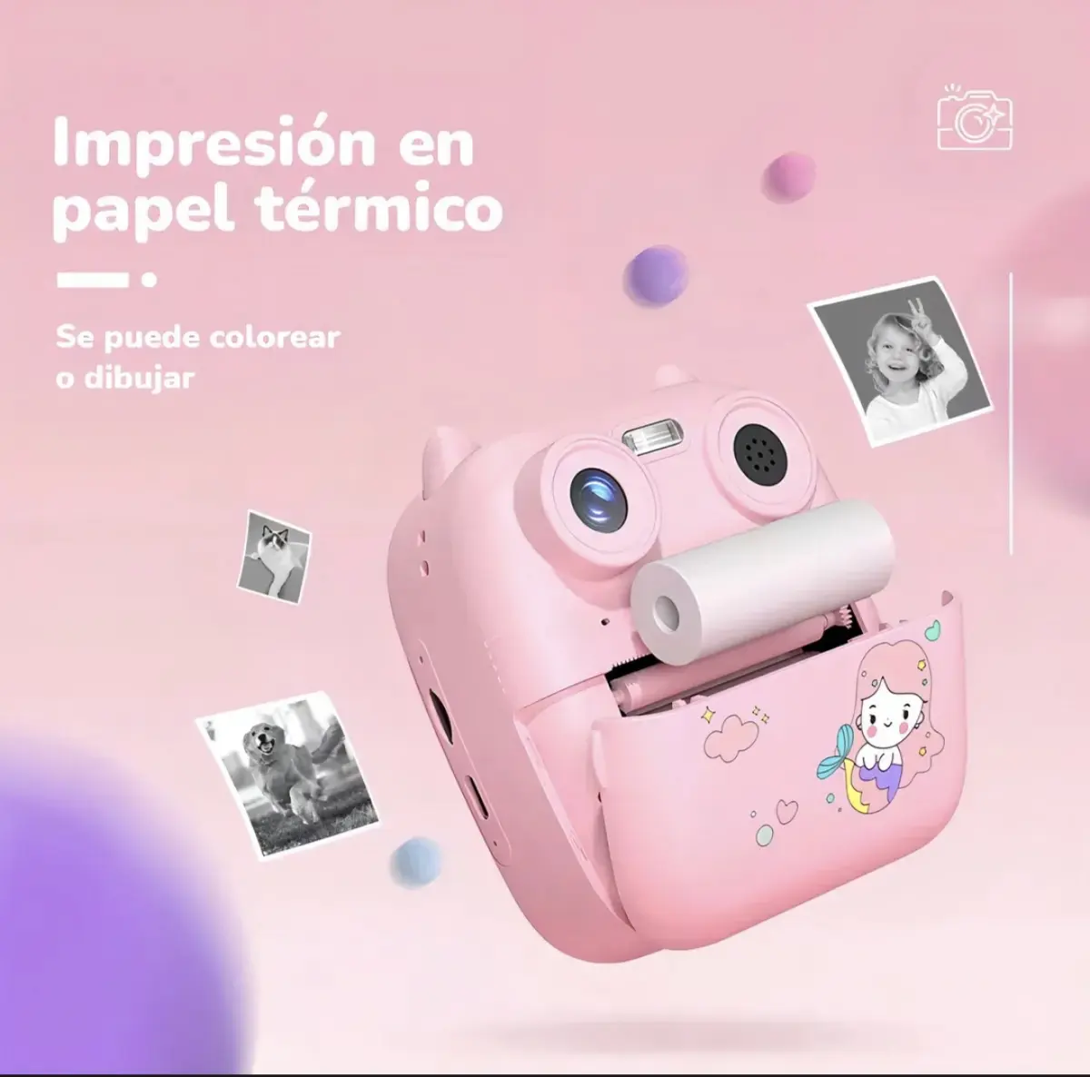 1 cámara de impresión para niños con 10 cm de alto x 9,5 cm de ancho X 4 cm de profundidad, 3 rollos de papel de impresión, kit con marcadores, 1 cable de carga, 1 correa para el cuello y 1 manual de usuario.